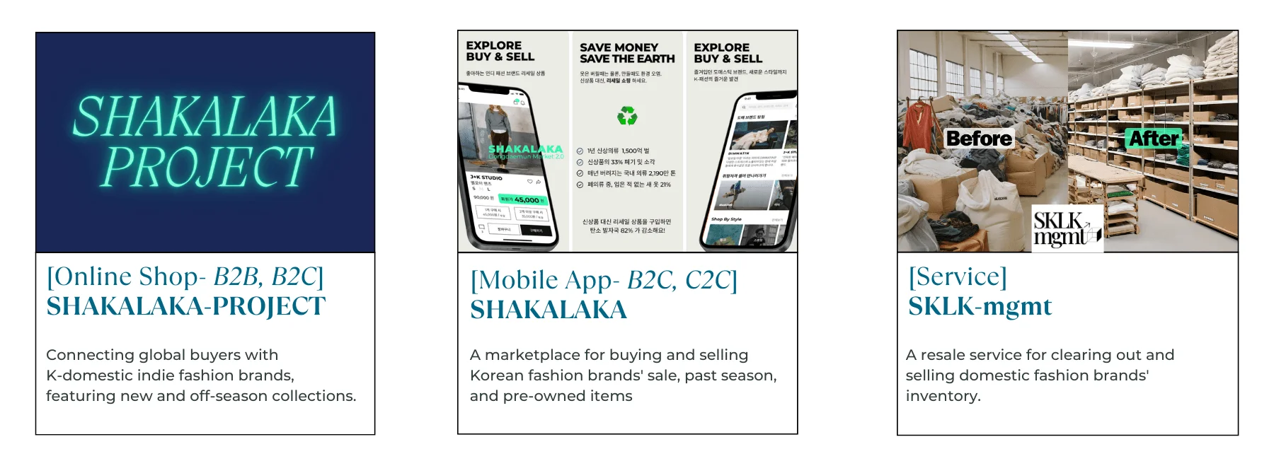 Through our online store, SHAKALAKA PROJECT, We introduce men's and women's K-domestic indie fashion brands to international resellers, showcasing their latest collections and offering everything from new arrivals to off-season items.