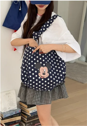 An eye-catching polka dot bag with a Mickey face graphic that adds a playful & witty touch to your everyday outfit. Small in size but big on style.