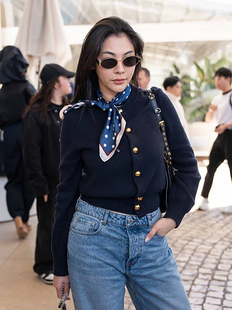 アクセサリーもトレンドを反映。バッグに結んだドットスカーフや、フラットシューズと合わせるドットソックスは、プレイフルさと洗練を同時に加える。小さなディテールが大きなスタイルインパクトを生むのだ。